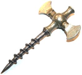| Here are two different champagne taps. The first, a one piece design with an archimedian worm. The second is a two piece design with a detachable trocar. Once the cork is penetrated the trocar is removed & the valve is open & closed depending on when a tipple is required. |